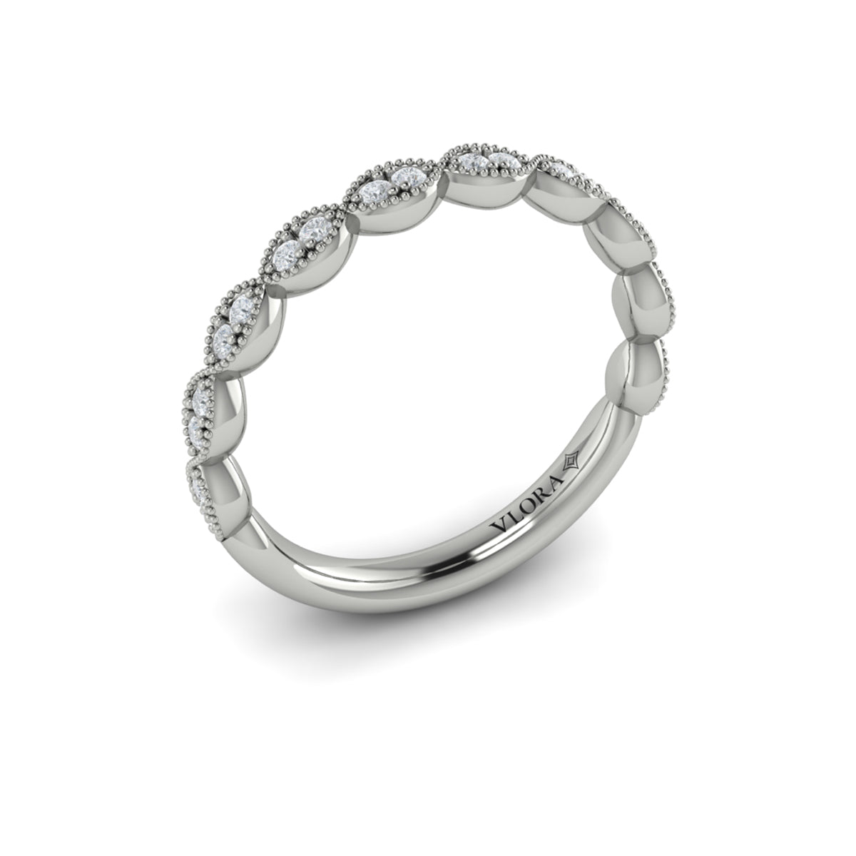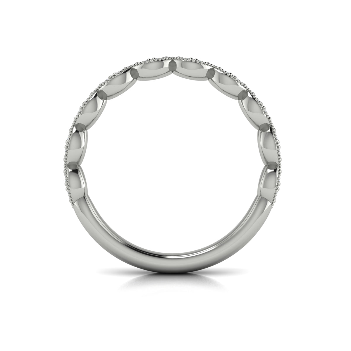 Celebrate eternal love with this meticulously crafted 14K white gold wedding band, featuring delicate diamonds that symbolize your unbreakable connection and shared journey.