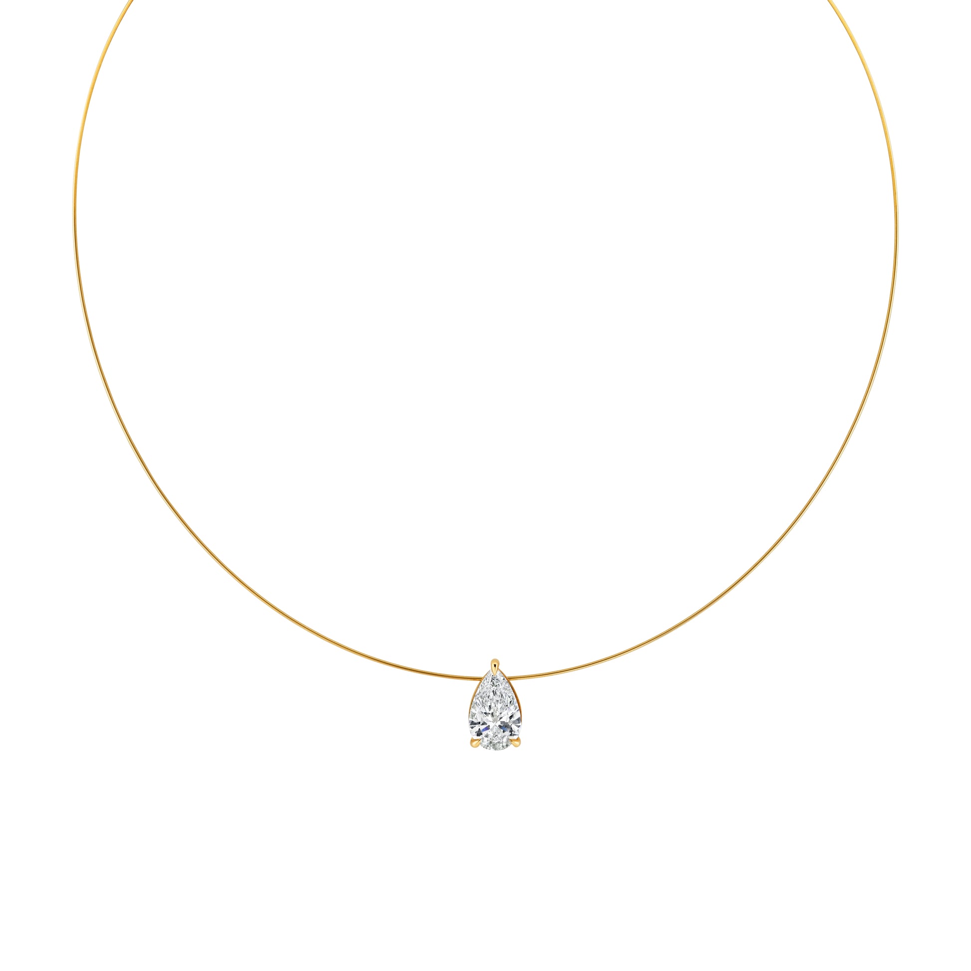 14K Yellow Gold Floating Pear Lab-Grown Diamond Necklace (3ct)