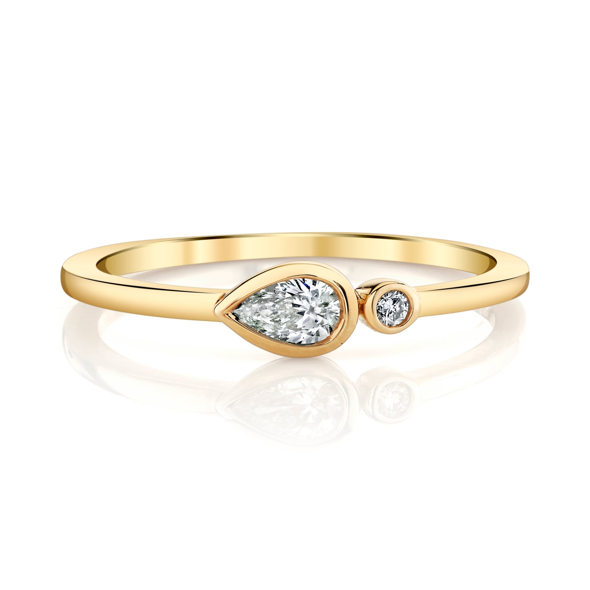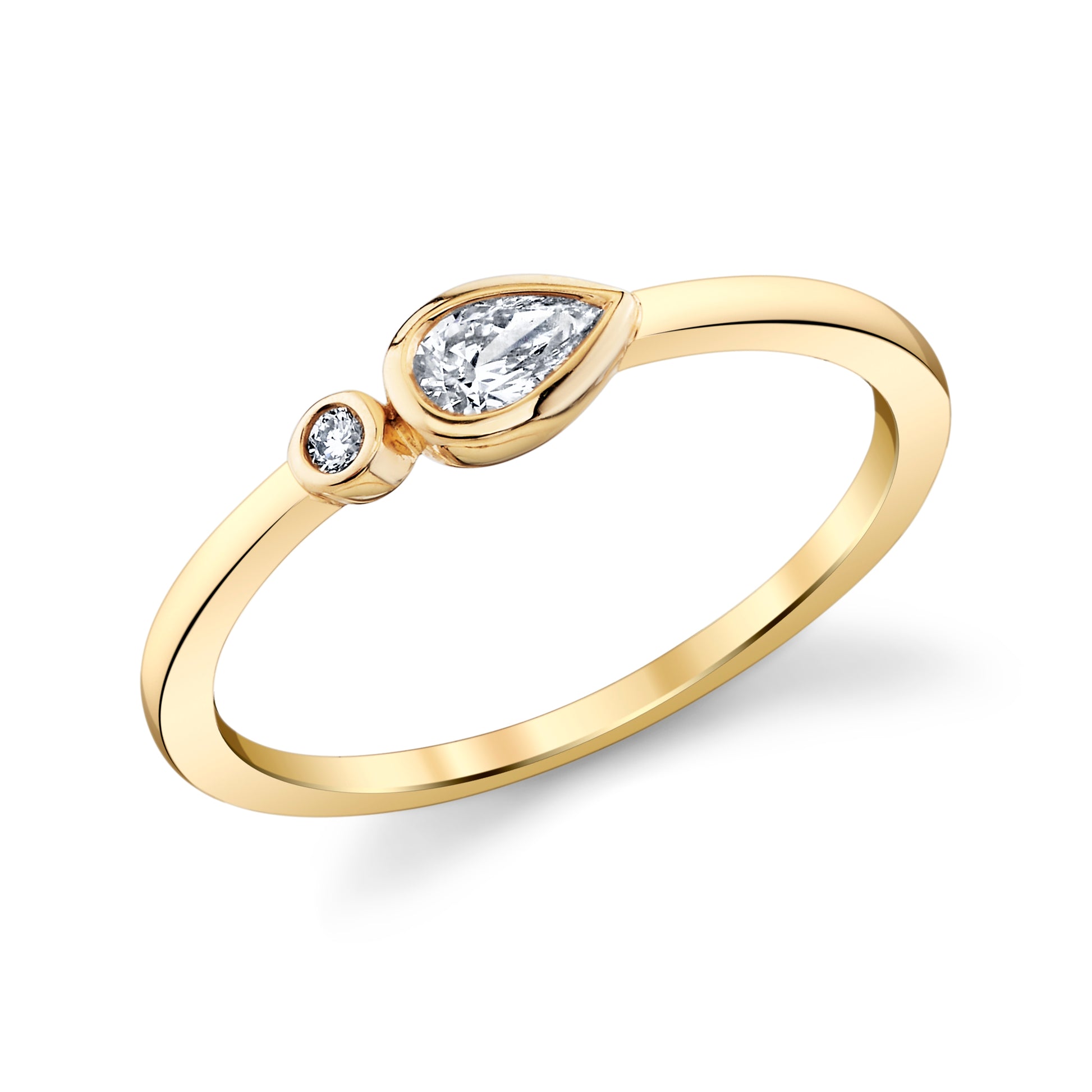 14K Yellow Gold Pear & Round Diamond Bezel Stackable Ring (.17ctw)