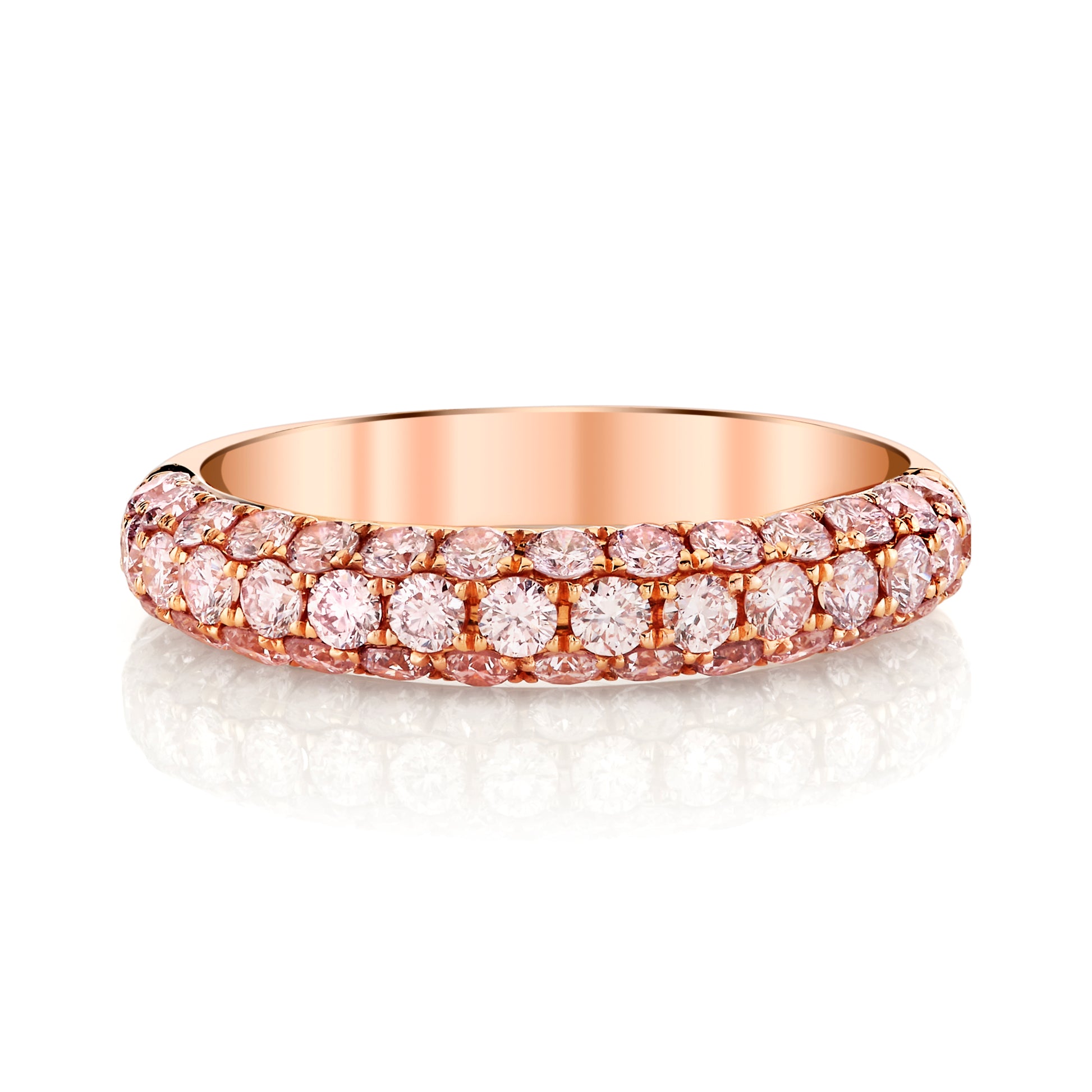 18K Rose Gold Three Row Pink Diamond Pave Ring (1.04ctw)
