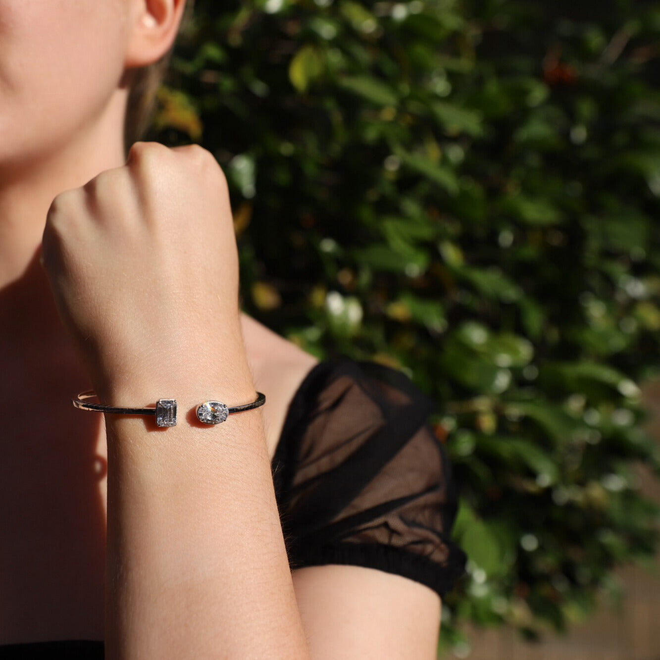 18K White Gold Oval & Emerald Lab-Grown Diamond Flexi Cuff (3.10ctw)