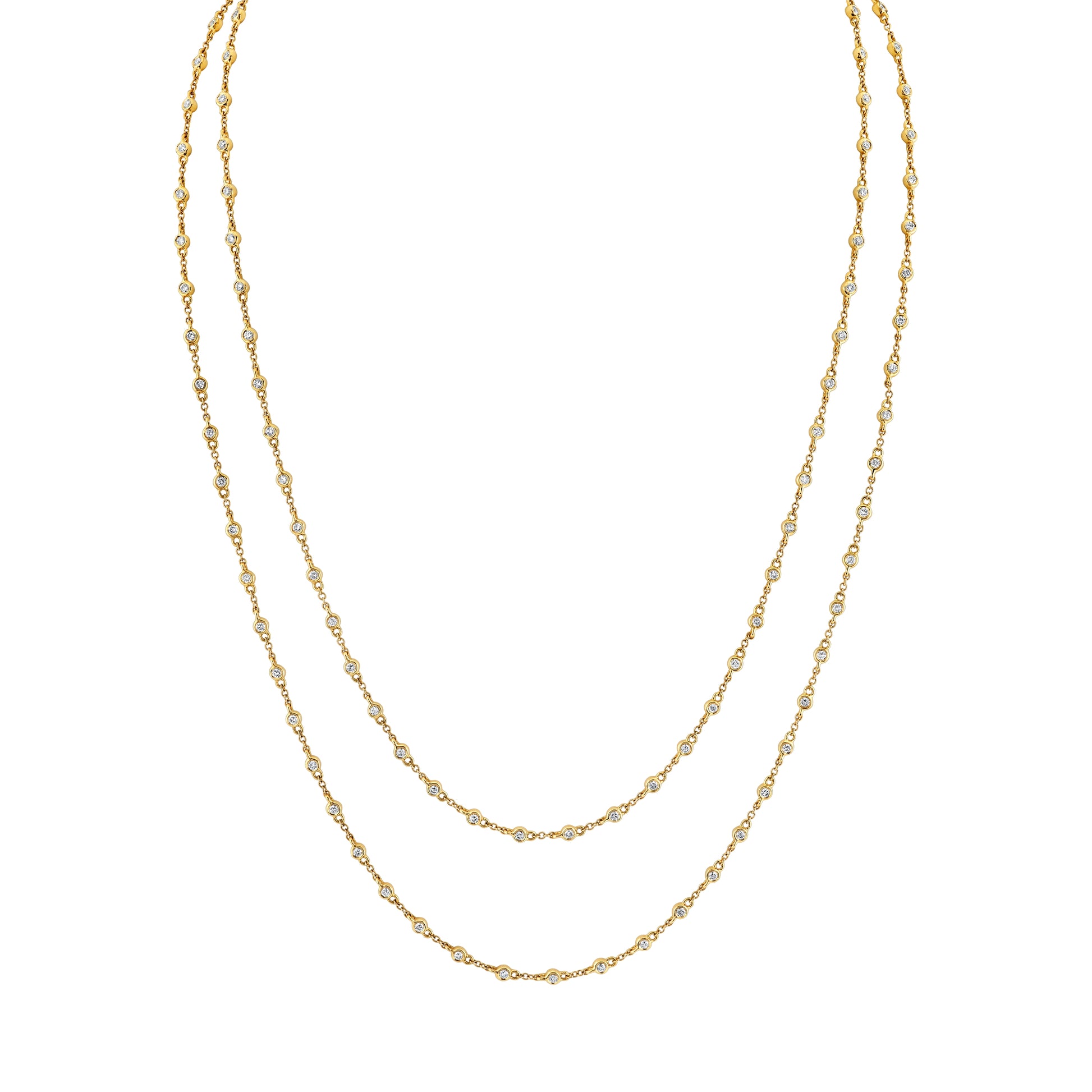 18K Yellow Gold Double Strand Diamond Station Necklace (2.10ctw)